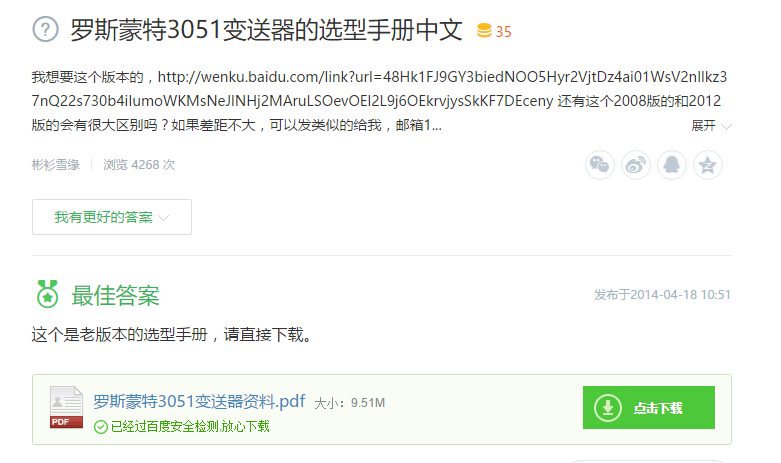 1、罗斯蒙特3051变送器的选型手册中文(我想要这个版本的,http://wenku.baidu.com/link?url=48Hk1FJ9GY3biedNOO5Hyr2VjtDz4ai01WsV2nllkz37nQ22s730b4iIumoWKMsNeJlNHj2MAruLSOevOEl2L9j6OEkrvjysSkKF7DEceny